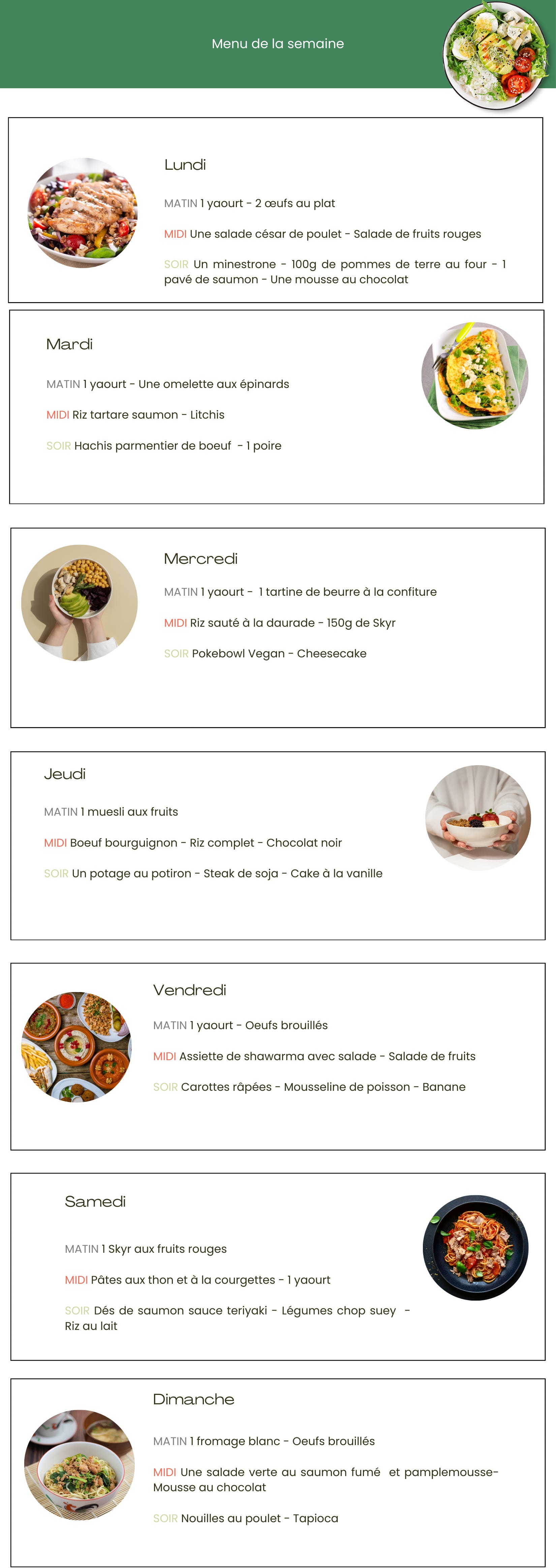 menus de la semaine et article sur les troubles alimentaires